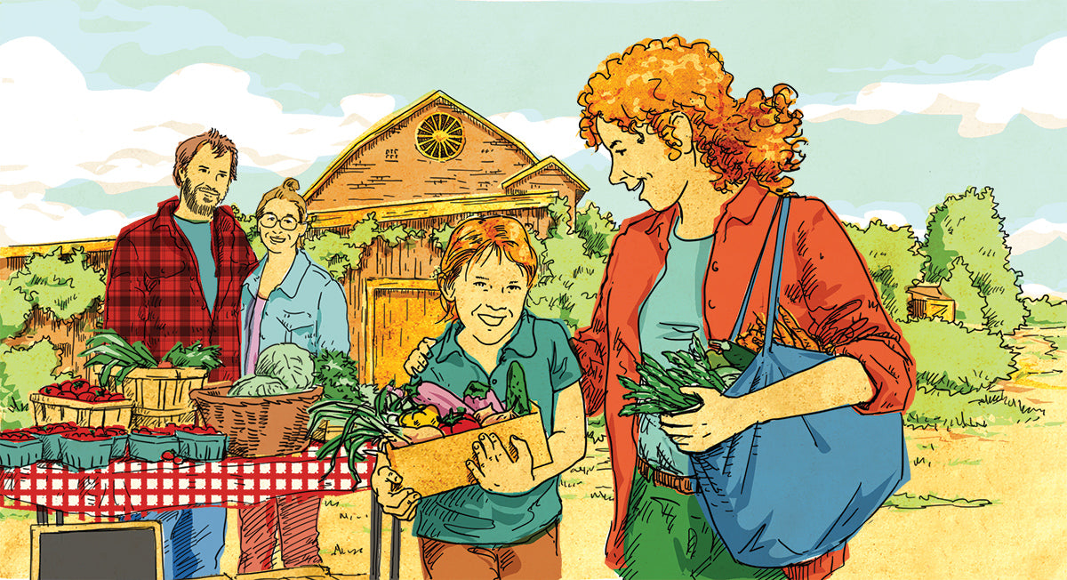 Vos fermiers de famille sont aussi présents en personne aux points de livraison en formule mini-marché pour vous donner un lien direct avec la provenance de vos aliments